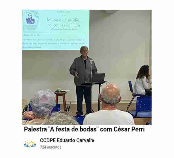 O tema “Parábola do festim de bodas” foi desenvolvido por Cesar Perri em reunião pública e transmitida pela internet, na sede do Centro de Cultura, Documentação e Pesquisa do Espiritismo, em São Paulo. O evento ocorreu na noite do dia 03 de novembro e foi coordenado por Sheila Uchiyama. Simultaneamente acontece reunião de equipe do CCDPE, coordenação de Pedro Nakano.