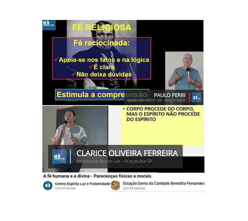 Na reunião pública matinal no dia 04 de janeiro, na Instituição Nosso Lar, em Araçatuba, Clarice Oliveira Ferreira comentou itens de “O Livro dos Espíritos”, sobre “Parecenças físicas e morais”; Paulo Sérgio Perri de Carvalho discorreu sobre“A fé humana e a divina”, com base em “O Evangelho segundo o Espiritismo”.