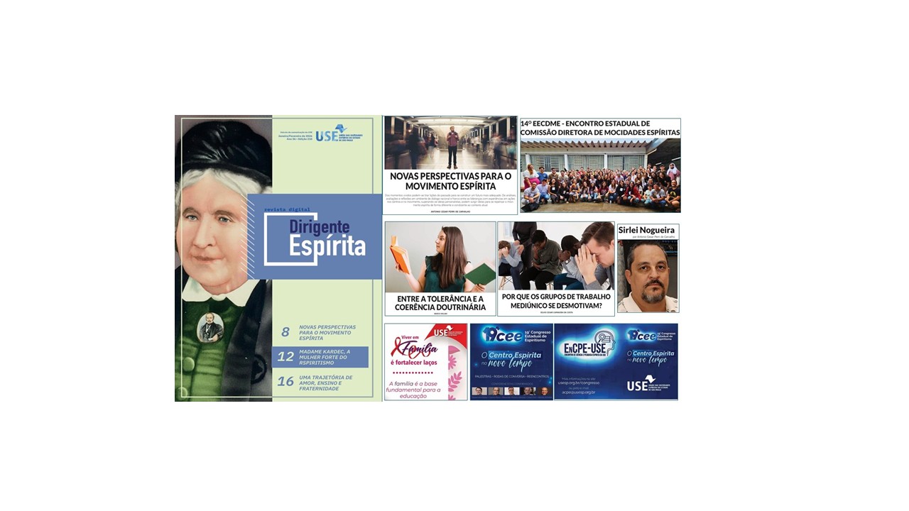 A revista digital Dirigente Espírita, órgão da União das Sociedades Espíritas do Estado de São Paulo, na edição de janeiro/fevereiro de 2026, a presidente Julia Nezu destaca o 19o Congresso Estadual de Espiritismo em junho, sob o tema “O centro espírita no novo tempo”, que promoverá reflexões sobre a atuação das casas espíritas na atualidade.