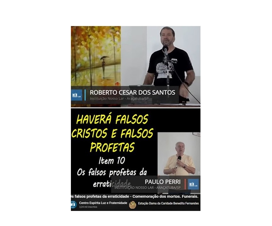 Na reunião pública matinal no dia 22 de março, na Instituição Nosso Lar, em Araçatuba, Roberto César dos Santos comentou itens de “O Livro dos Espíritos”, sobre “comemoração dos mortos; funerais”; Paulo Sérgio Perri de Carvalho discorreu sobre “os falsos profetas na erraticidade”, com base em “O Evangelho segundo o Espiritismo”. A reunião foi transmitida pelo canal da Instituição e pela Estação Dama da Caridade Benedita Fernandes.
