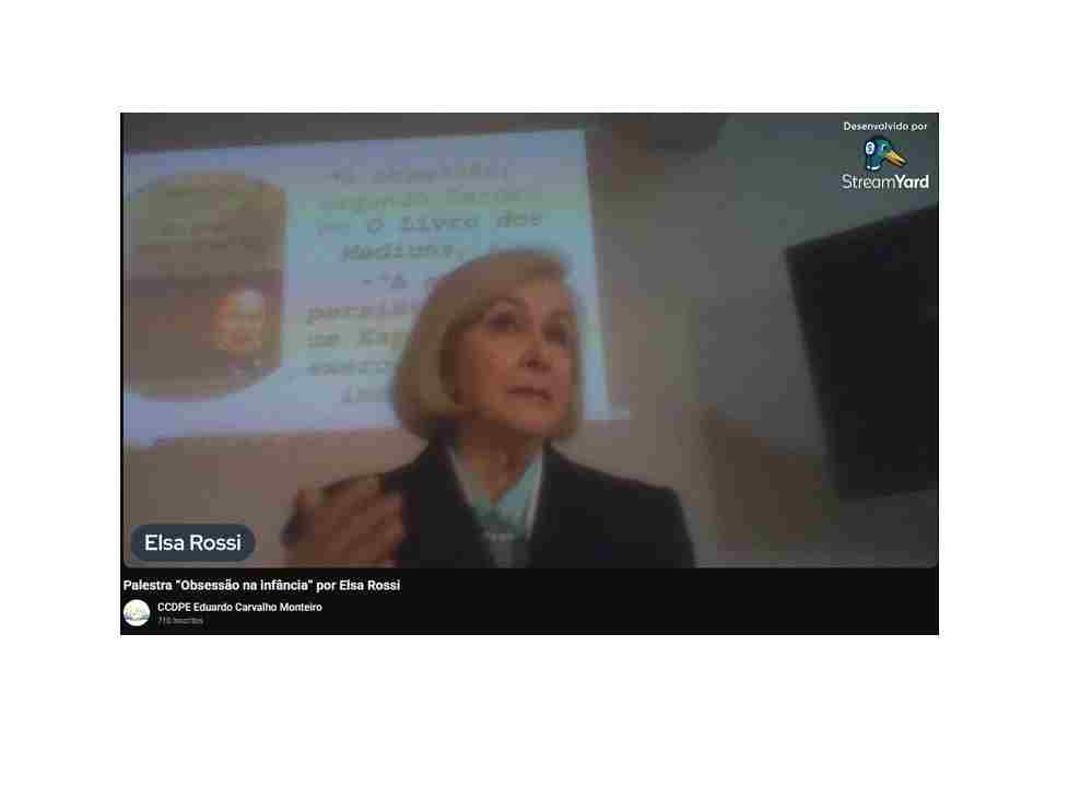Na noite do dia 20 de outubro, na sede do Centro de Cultura, Documentação e Pesquisa do Espiritismo, houve palestra presencial e transmitida pela internet sobre o tema “Obsessão na infância” por Elsa Rossi, presidente do British Union of Spiritism Societies (de Londres). A reunião foi aberta por Júlia Nezu, presidente do CCDPE e da USE-SP.