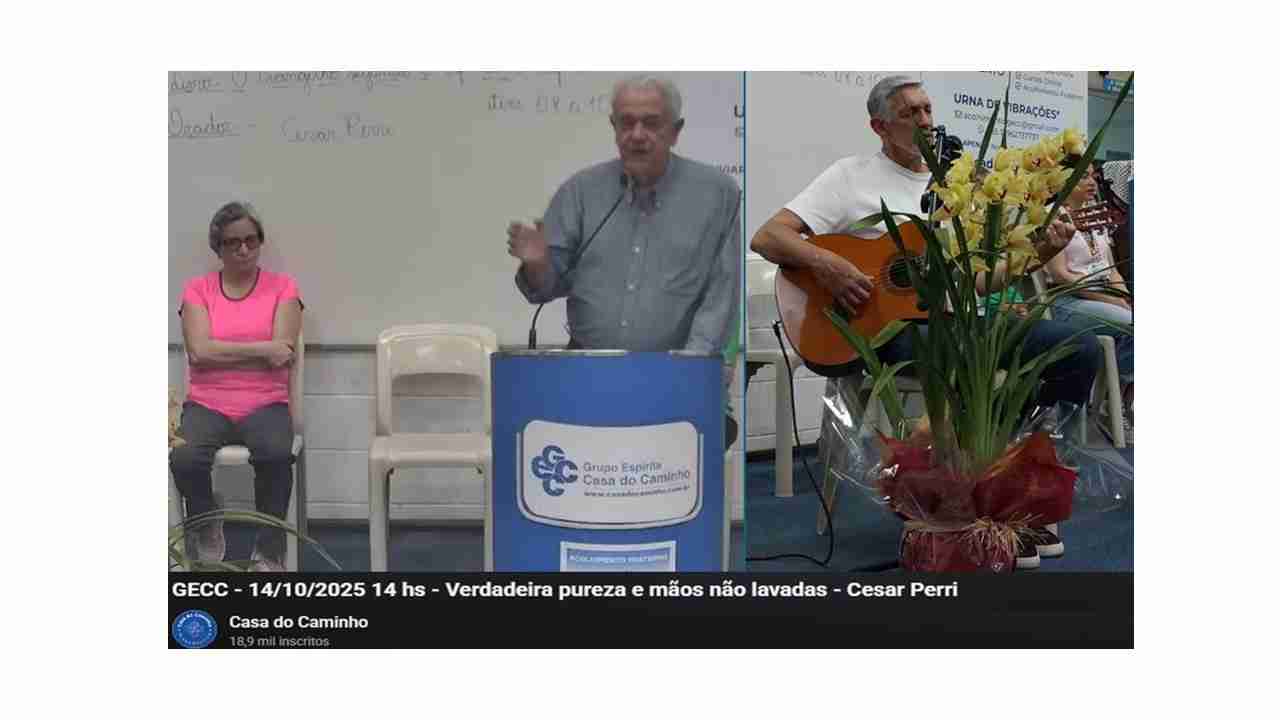 Na reunião pública da tarde do dia 14 de outubro, Cesar Perri abordou o tema “verdadeira pureza e mãos não lavadas” (Cap. VIII de “O evangelho segundo o espiritismo”, itens 8-10). A reunião foi presidida por Inês Bareia e contou com apresentação de violão e canto com Helson Lever Camilli.